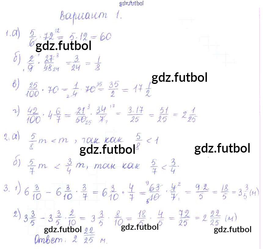 Готовые домашние задания по Математике за 6 класс Журавлев Контрольные и самостоятельные работы УМК 2015 ФГОС - СР-14. Варианты 1