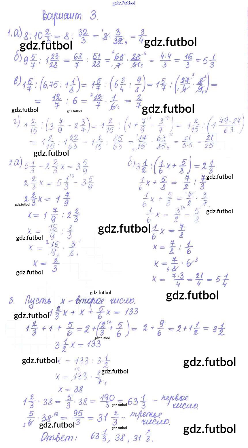 Готовые домашние задания по Математике за 6 класс Журавлев Контрольные и самостоятельные работы УМК 2015 ФГОС - СР-17. Варианты 3