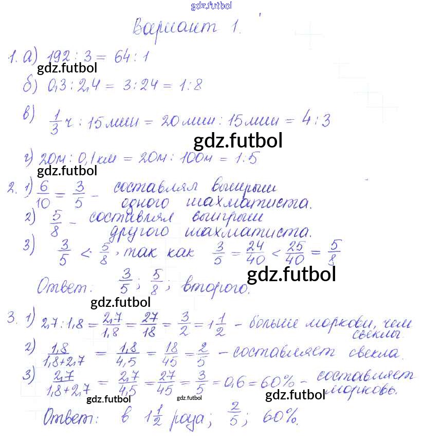 Готовые домашние задания по Математике за 6 класс Журавлев Контрольные и самостоятельные работы УМК 2015 ФГОС - СР-20. Варианты 1