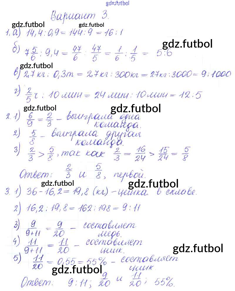 Готовые домашние задания по Математике за 6 класс Журавлев Контрольные и самостоятельные работы УМК 2015 ФГОС - СР-20. Варианты 3