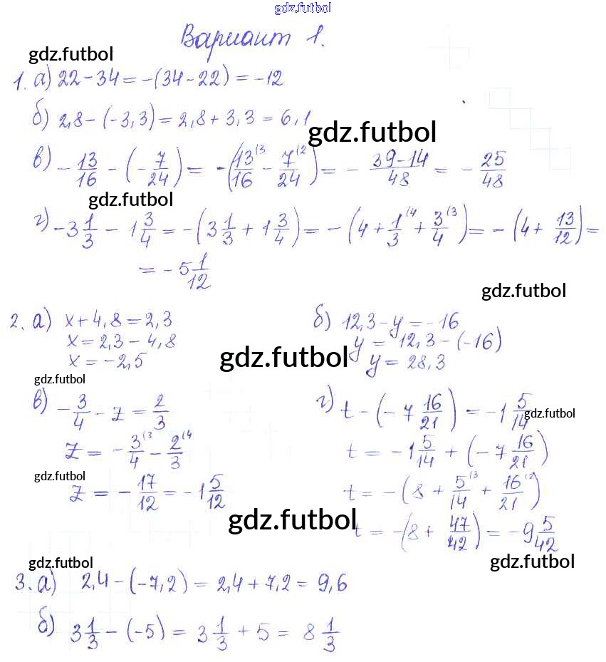 Готовые домашние задания по Математике за 6 класс Журавлев Контрольные и самостоятельные работы УМК 2015 ФГОС - СР-33. Варианты 1