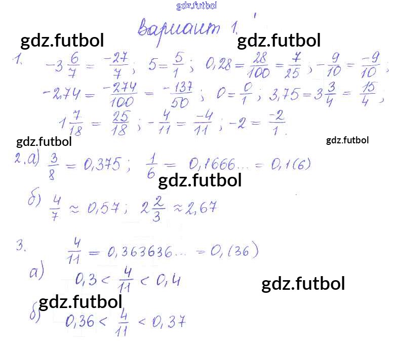 Готовые домашние задания по Математике за 6 класс Журавлев Контрольные и самостоятельные работы УМК 2015 ФГОС - СР-36. Варианты 1