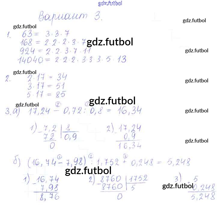 Готовые домашние задания по Математике за 6 класс Журавлев Контрольные и самостоятельные работы УМК 2015 ФГОС - СР-5. Варианты 3