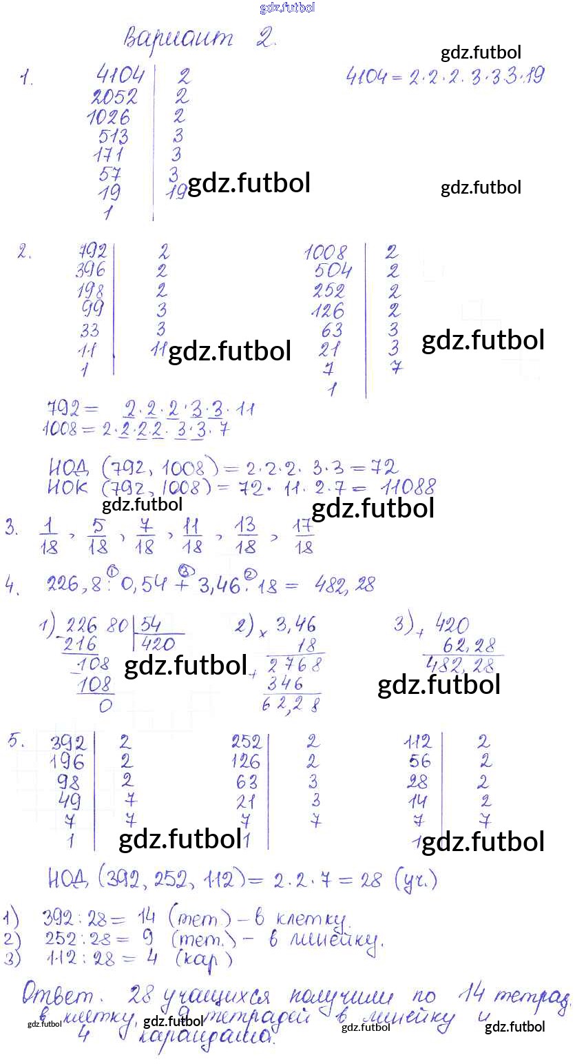 Готовые домашние задания по Математике за 6 класс Журавлев Контрольные и самостоятельные работы УМК 2015 ФГОС - КР-1. Варианты 2