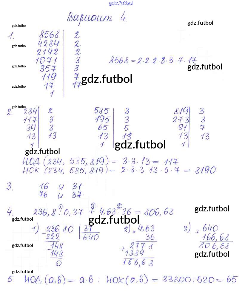 Готовые домашние задания по Математике за 6 класс Журавлев Контрольные и самостоятельные работы УМК 2015 ФГОС - КР-1. Варианты 4