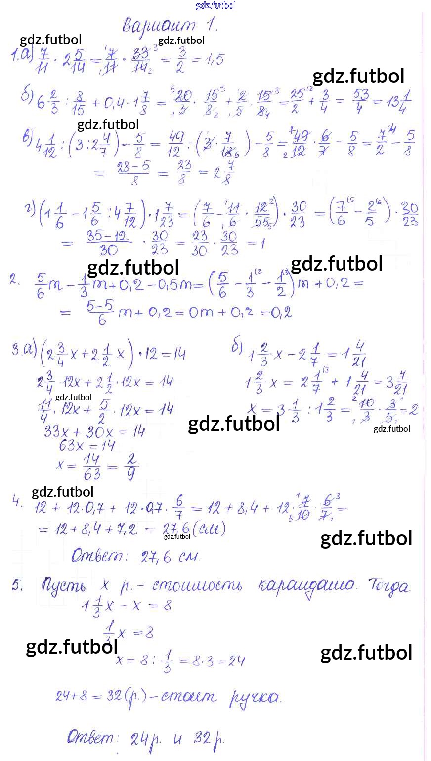 Готовые домашние задания по Математике за 6 класс Журавлев Контрольные и самостоятельные работы УМК 2015 ФГОС - КР-3. Варианты 1