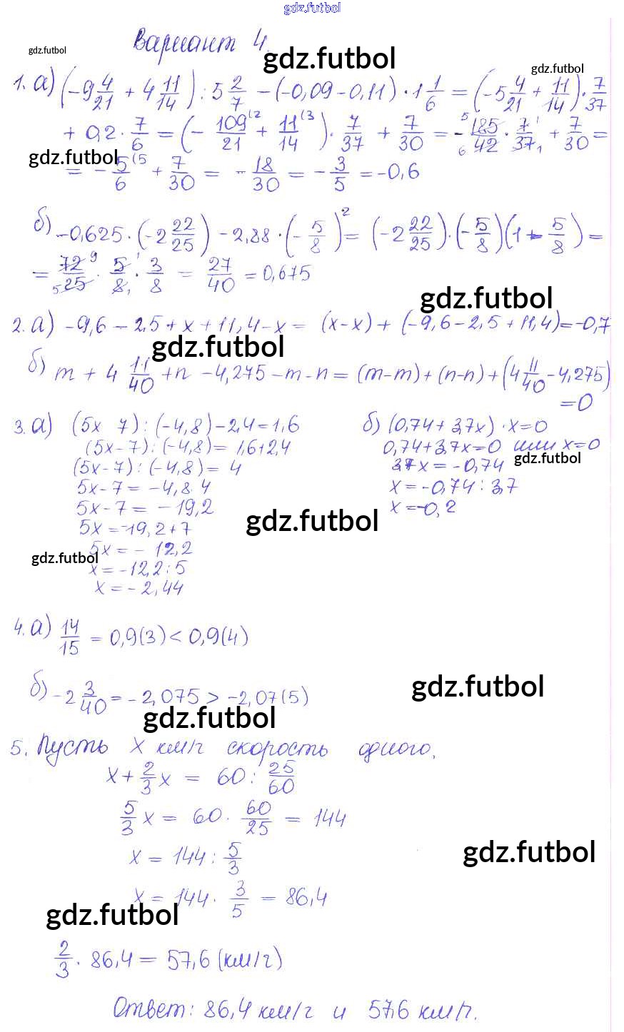 Готовые домашние задания по Математике за 6 класс Журавлев Контрольные и самостоятельные работы УМК 2015 ФГОС - КР-7. Варианты 4