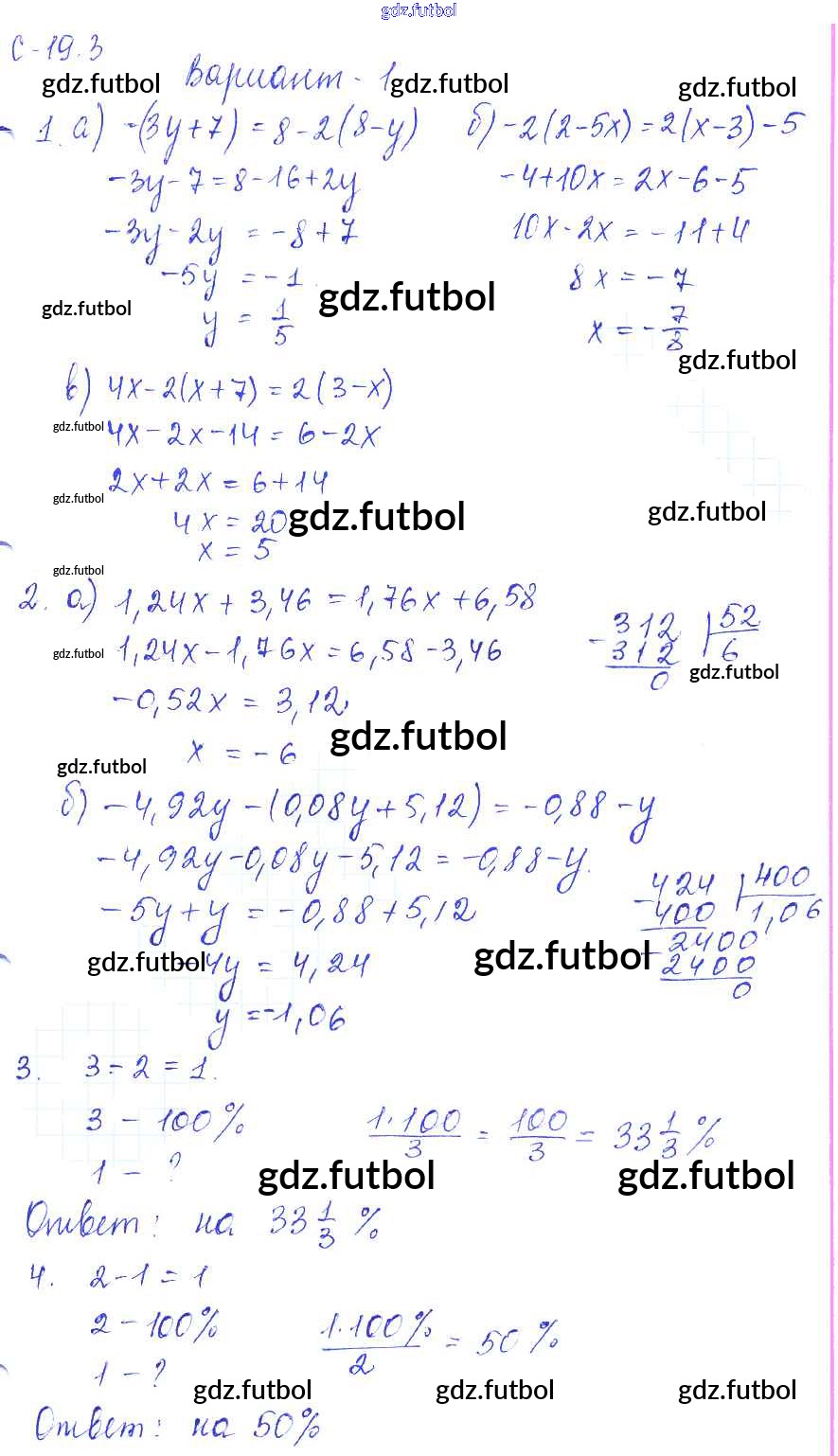 Готовые домашние задания по Математике за 6 класс Зубарева Самостоятельные работы УМК  2020 ФГОС - 3. Варианты 1