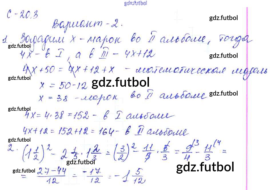 Готовые домашние задания по Математике за 6 класс Зубарева Самостоятельные работы УМК 2020 ФГОС - 3. Варианты 2