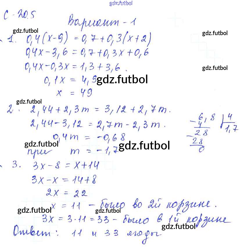 Готовые домашние задания по Математике за 6 класс Зубарева Самостоятельные работы УМК  2020 ФГОС - 5. Варианты 1