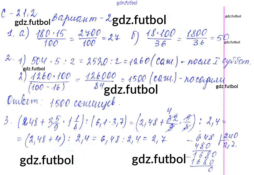 Готовые домашние задания по Математике за 6 класс Зубарева Самостоятельные работы УМК 2020 ФГОС - 2. Варианты 2
