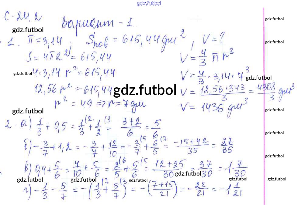 Готовые домашние задания по Математике за 6 класс Зубарева Самостоятельные работы УМК 2020 ФГОС - 2. Варианты 1