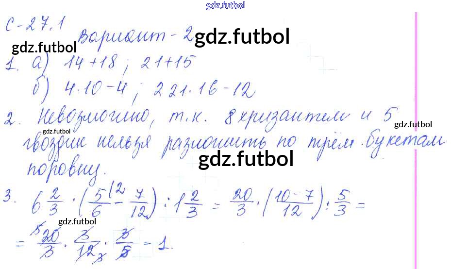Готовые решения задач (ГДЗ) по Математике шестой класс Зубарева, Лепешонкова Самостоятельные работы УМК 2020 ФГОС - 1. Варианты СР-27 2 доступны для различных учебных материалов. У нас вы сможете найти авторские решения для всех пособий, предназначенных для школьников. Не секрет, что в настоящее время многие школьники прибегают к использованию готовых решебников, ведь они содержат подробные ответы для каждого упражнения, представленного в учебнике.