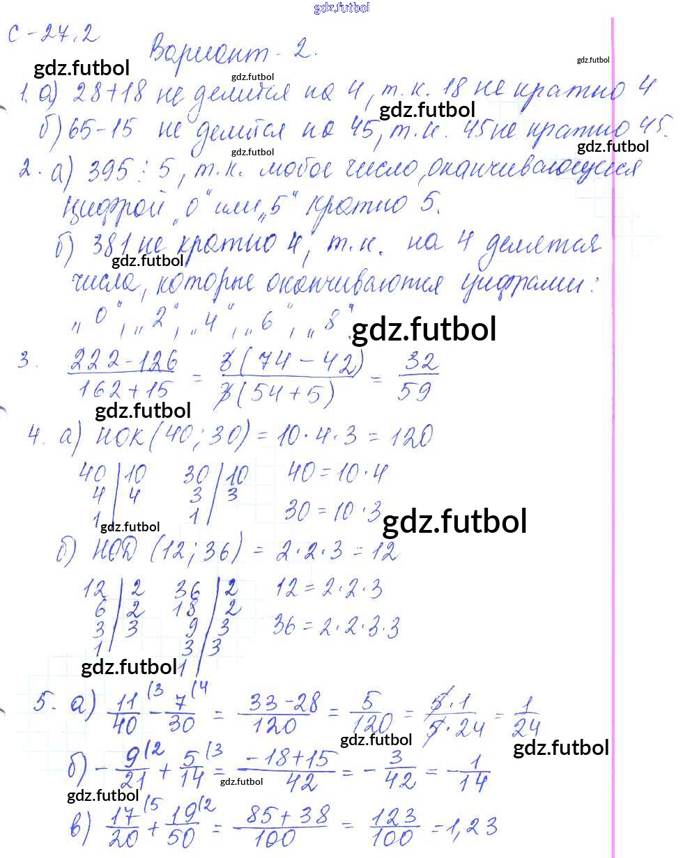 Готовые домашние задания по Математике за 6 класс Зубарева Самостоятельные работы УМК 2020 ФГОС - 2. Варианты 2
