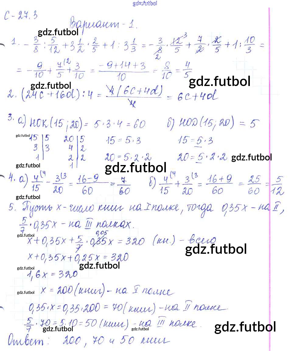 Готовые домашние задания по Математике за 6 класс Зубарева Самостоятельные работы УМК  2020 ФГОС - 3. Варианты 1