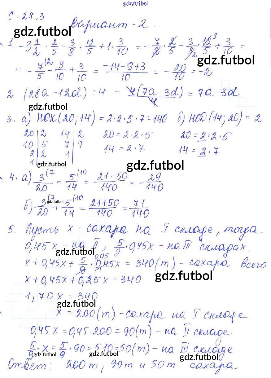 Готовые домашние задания по Математике за 6 класс Зубарева Самостоятельные работы УМК  2020 ФГОС - 3. Варианты 2