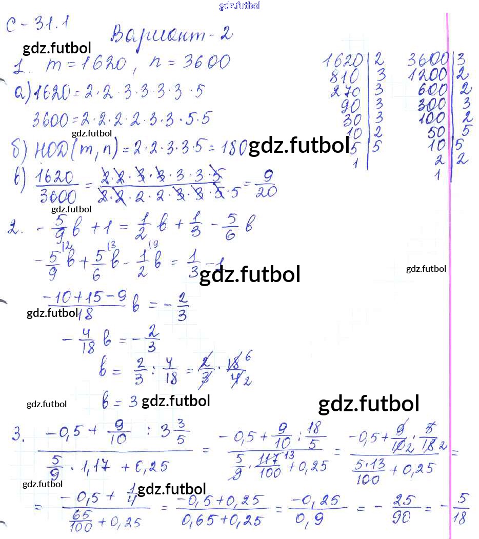 Готовые домашние задания по Математике за 6 класс Зубарева Самостоятельные работы УМК 2020 ФГОС - 1. Варианты 2