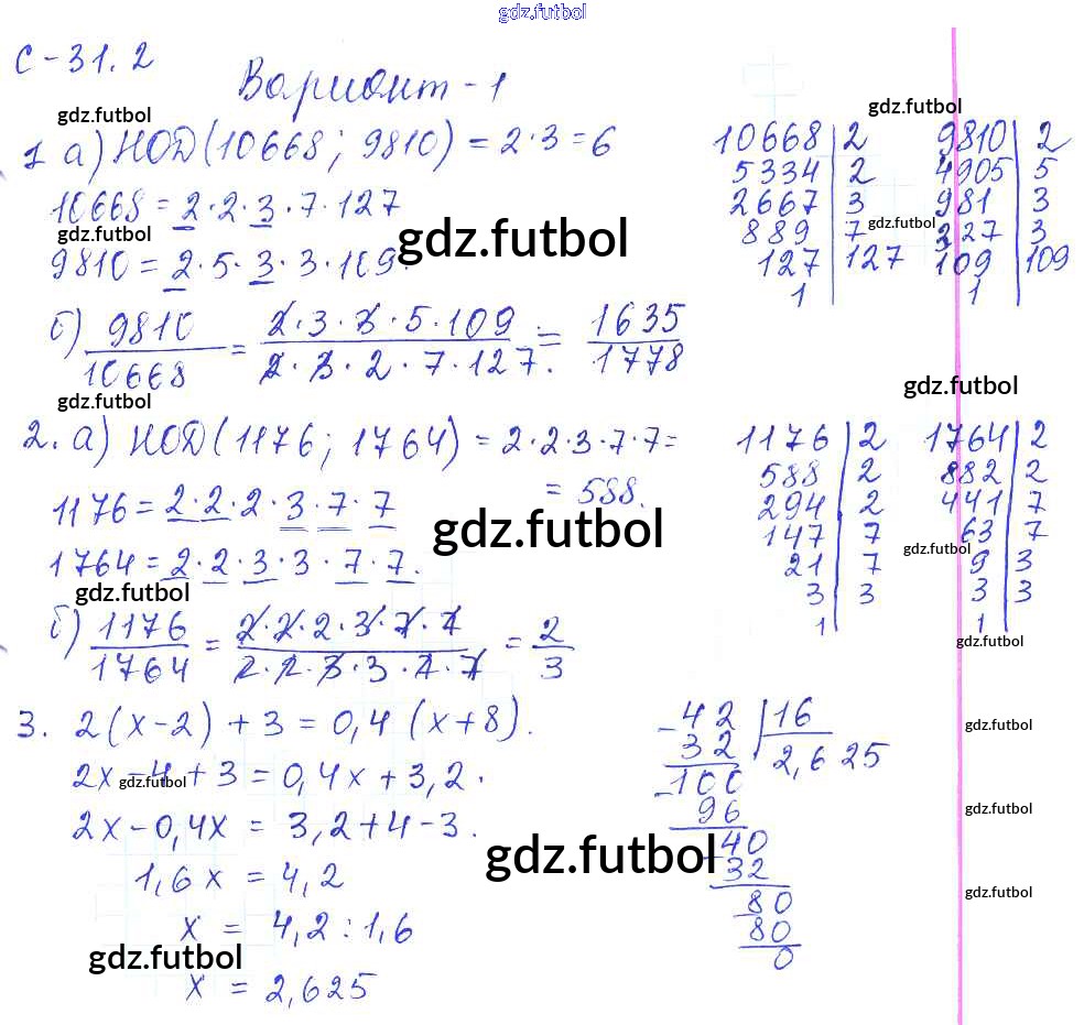 Готовые домашние задания по Математике за 6 класс Зубарева Самостоятельные работы УМК 2020 ФГОС - 2. Варианты 1