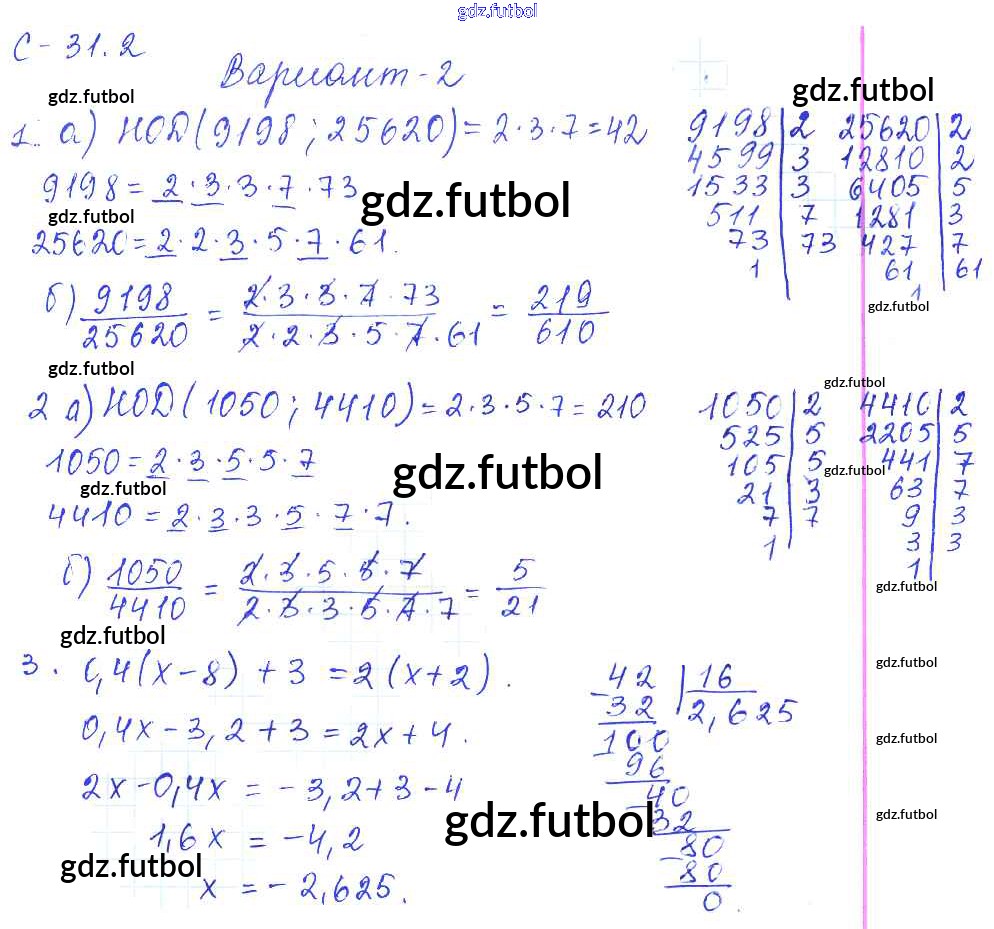Готовые домашние задания по Математике за 6 класс Зубарева Самостоятельные работы УМК 2020 ФГОС - 2. Варианты 2