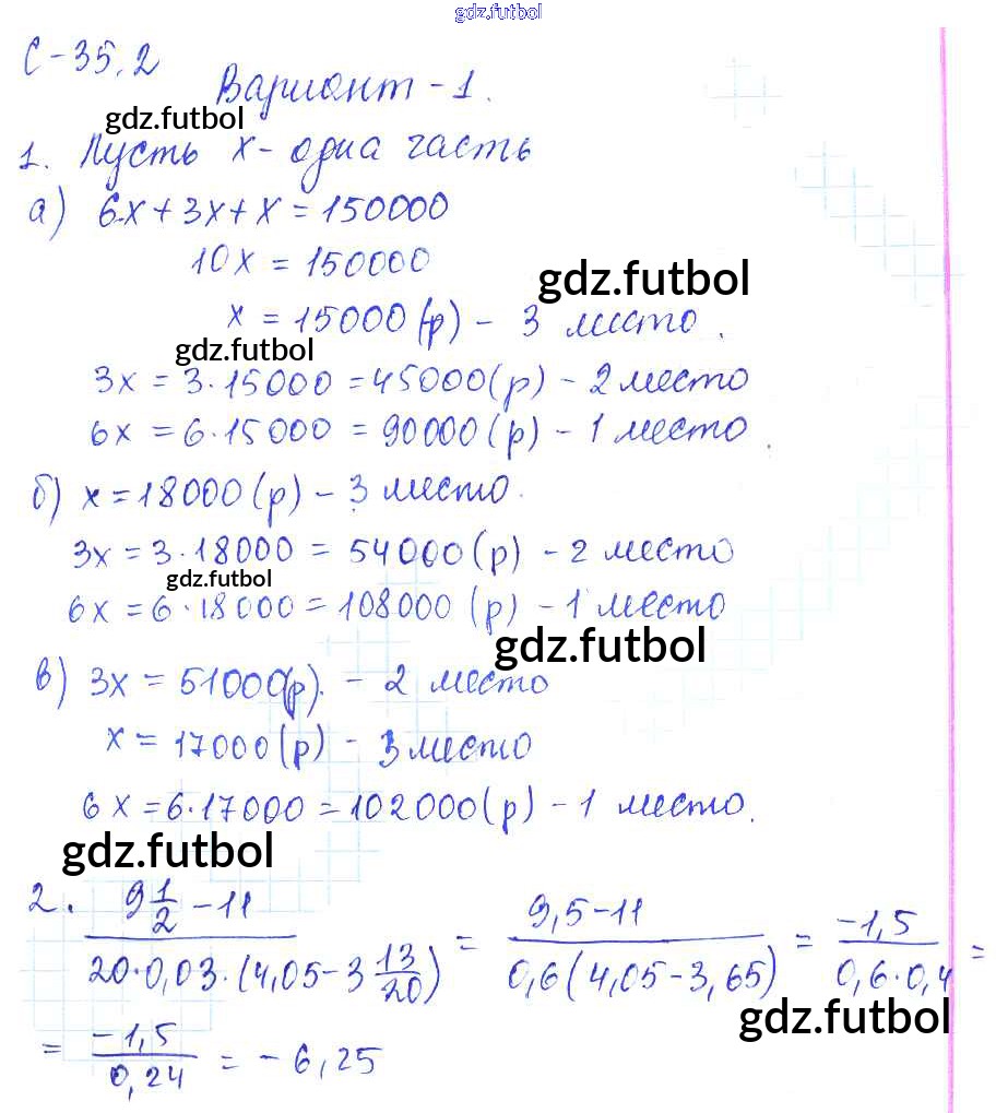 Готовые домашние задания по Математике за 6 класс Зубарева Самостоятельные работы УМК 2020 ФГОС - 2. Варианты 1