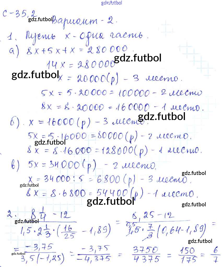 Готовые домашние задания по Математике за 6 класс Зубарева Самостоятельные работы УМК 2020 ФГОС - 2. Варианты 2