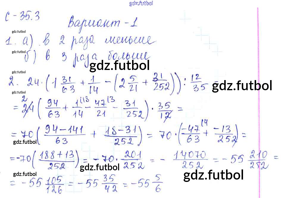Готовые домашние задания по Математике за 6 класс Зубарева Самостоятельные работы УМК 2020 ФГОС - 3. Варианты 1