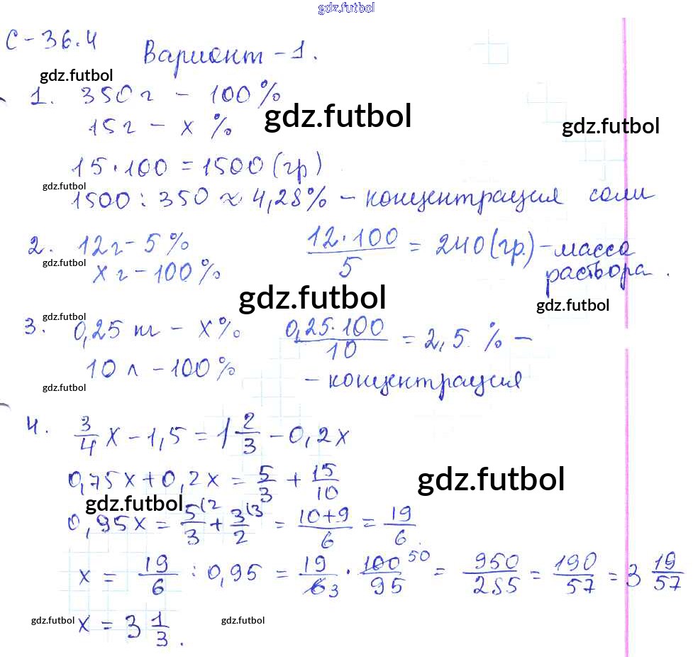 Готовые домашние задания по Математике за 6 класс Зубарева Самостоятельные работы УМК  2020 ФГОС - 4. Варианты 1