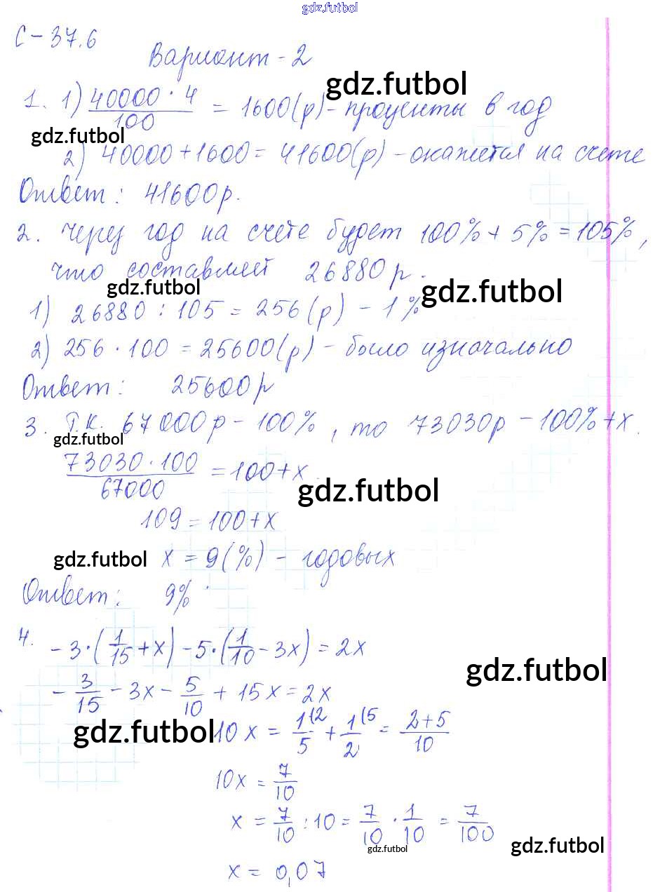 Готовые домашние задания по Математике за 6 класс Зубарева Самостоятельные работы УМК 2020 ФГОС - 6. Варианты 2