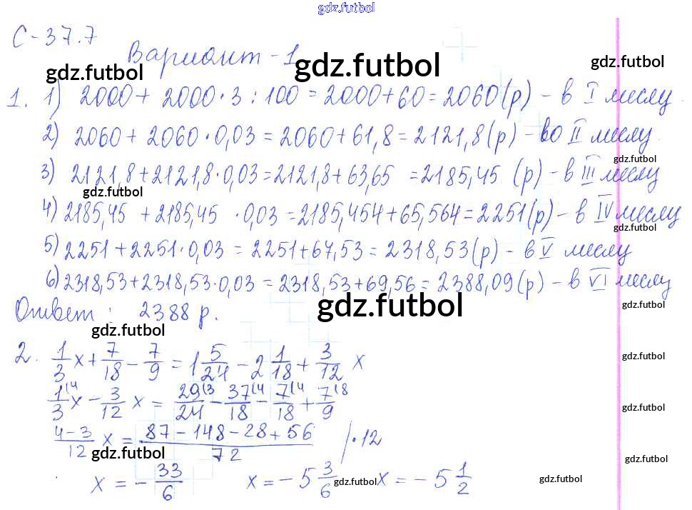 Готовые домашние задания по Математике за 6 класс Зубарева Самостоятельные работы УМК 2020 ФГОС - 7. Варианты 1