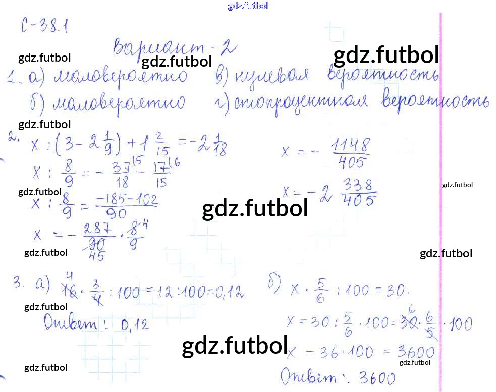 Готовые домашние задания по Математике за 6 класс Зубарева Самостоятельные работы УМК 2020 ФГОС - 1. Варианты 2