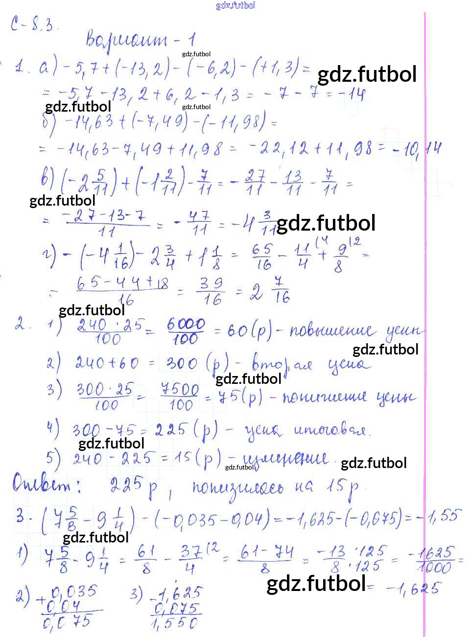 Готовые домашние задания по Математике за 6 класс Зубарева Самостоятельные работы УМК  2020 ФГОС - 3. Варианты 1