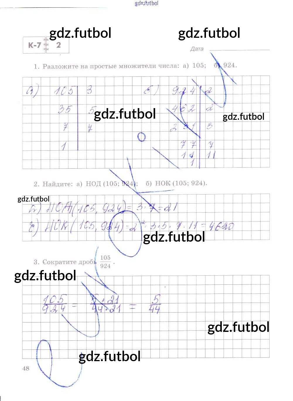 Готовые домашние задания по Математике за 6 класс Зубарева Тетрадь для контрольных работ 2020 ФГОС - Часть 1. Страницы 48