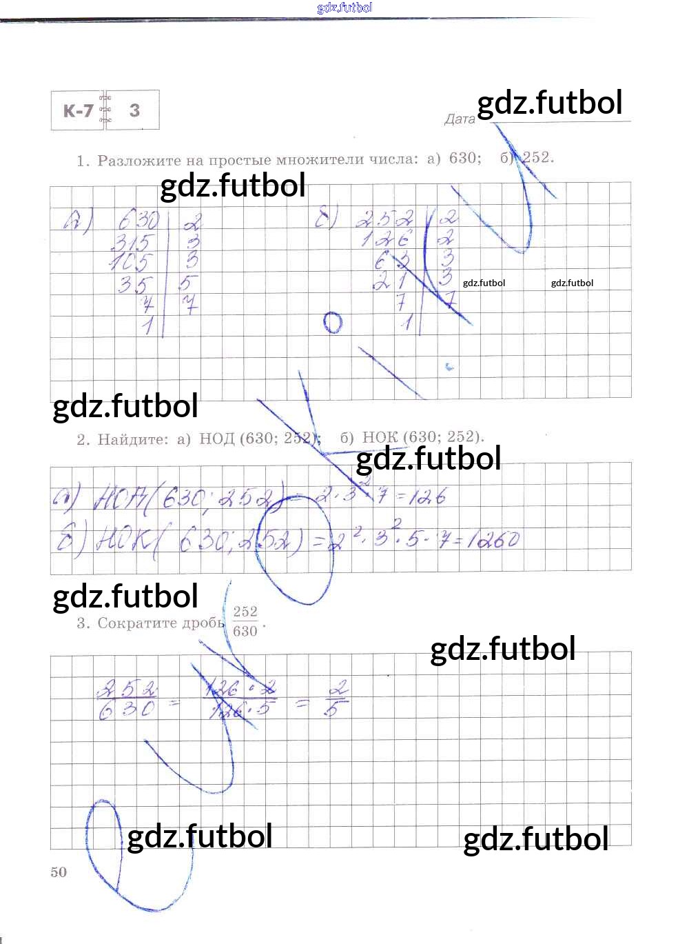 Готовые домашние задания по Математике за 6 класс Зубарева Тетрадь для контрольных работ 2020 ФГОС - Часть 1. Страницы 50