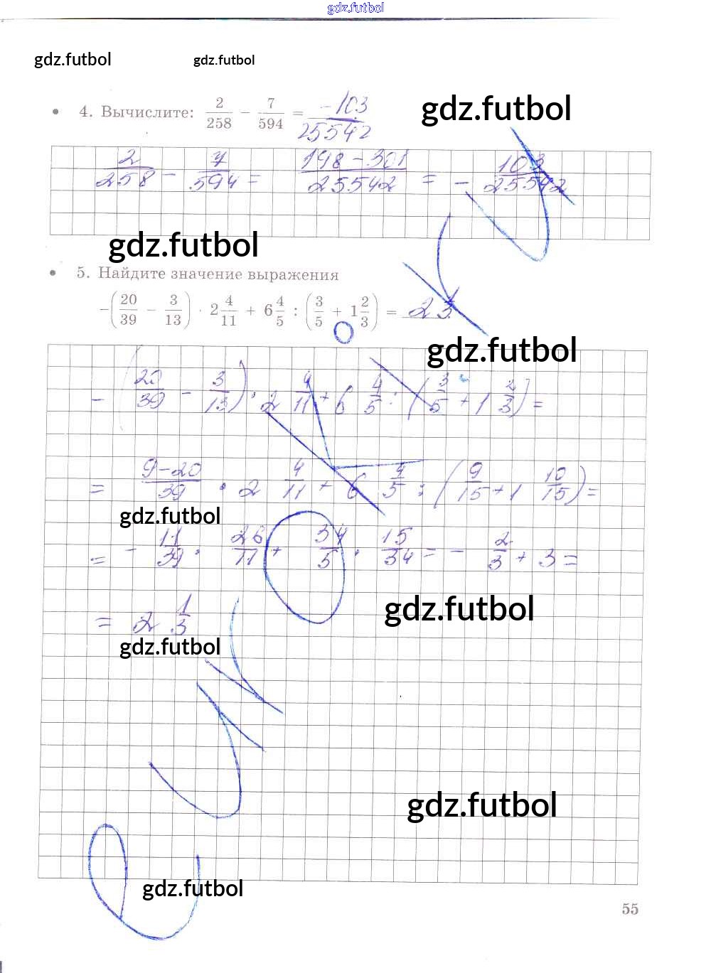 Готовые домашние задания по Математике за 6 класс Зубарева Тетрадь для контрольных работ 2020 ФГОС - Часть 1. Страницы 55