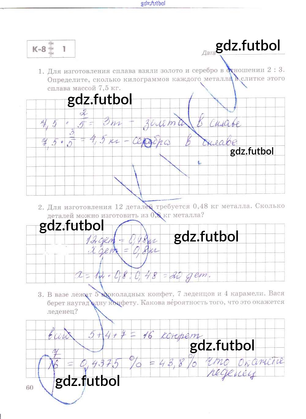 Готовые домашние задания по Математике за 6 класс Зубарева Тетрадь для контрольных работ 2020 ФГОС - Часть 1. Страницы 60