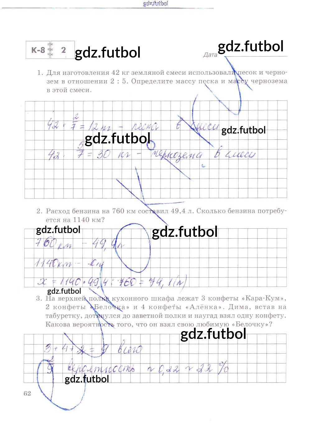 Готовые домашние задания по Математике за 6 класс Зубарева Тетрадь для контрольных работ 2020 ФГОС - Часть 1. Страницы 62