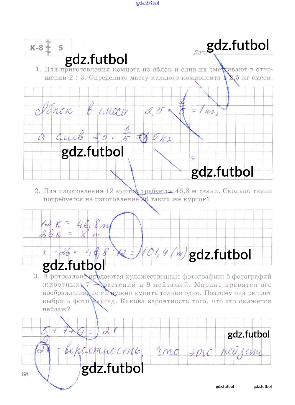 Готовые домашние задания по Математике за 6 класс Зубарева Тетрадь для контрольных работ 2020 ФГОС - Часть 1. Страницы 68