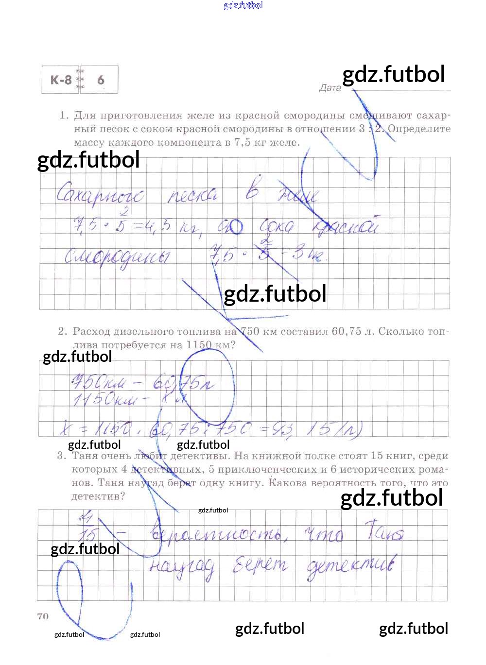 Готовые домашние задания по Математике за 6 класс Зубарева Тетрадь для контрольных работ 2020 ФГОС - Часть 1. Страницы 70