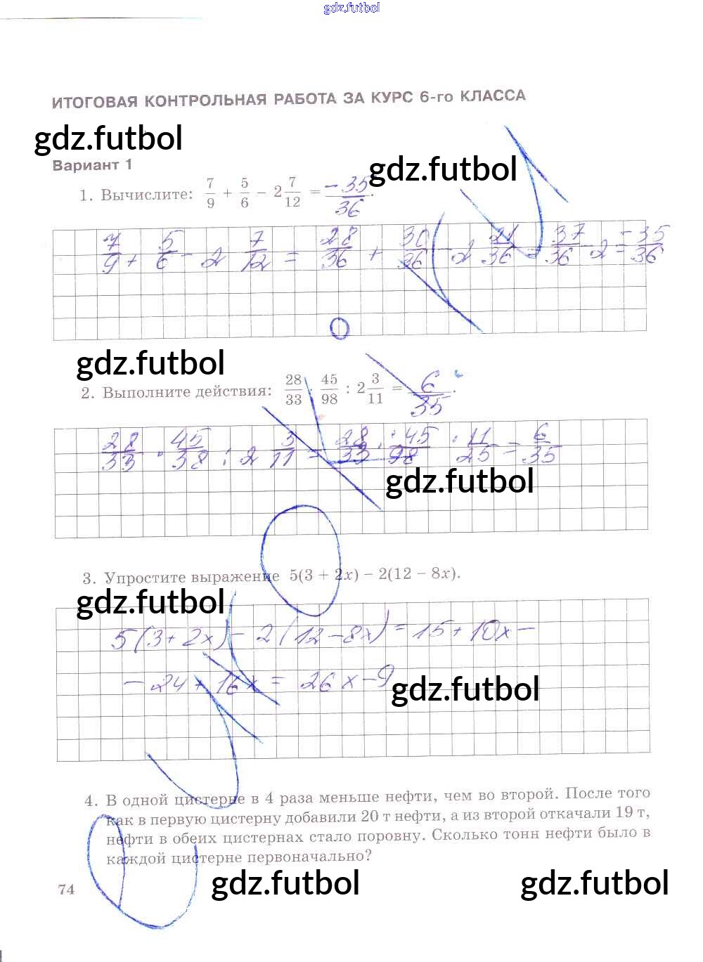 Готовые домашние задания по Математике за 6 класс Зубарева Тетрадь для контрольных работ 2020 ФГОС - Часть 1. Страницы 74