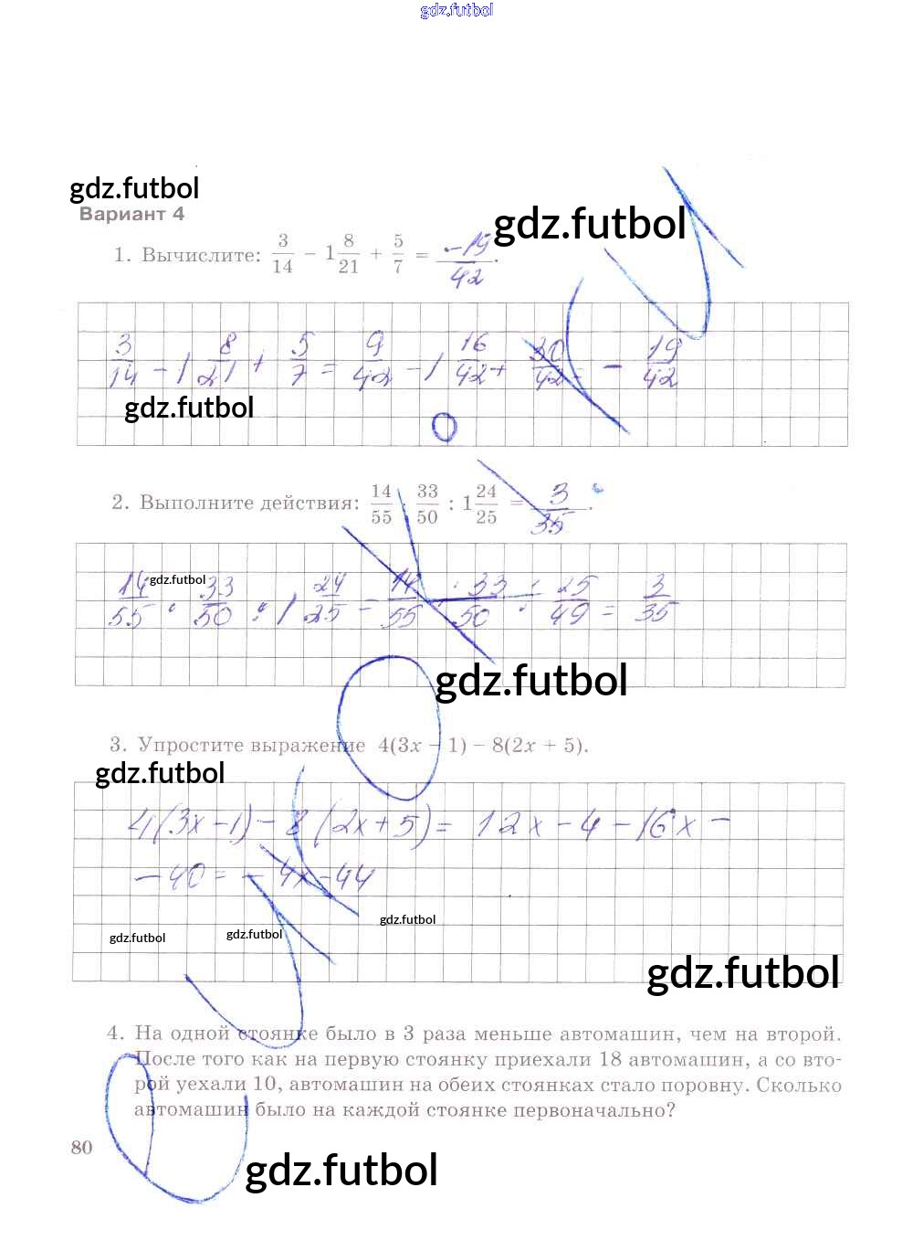 Готовые домашние задания по Математике за 6 класс Зубарева Тетрадь для контрольных работ 2020 ФГОС - Часть 1. Страницы 80