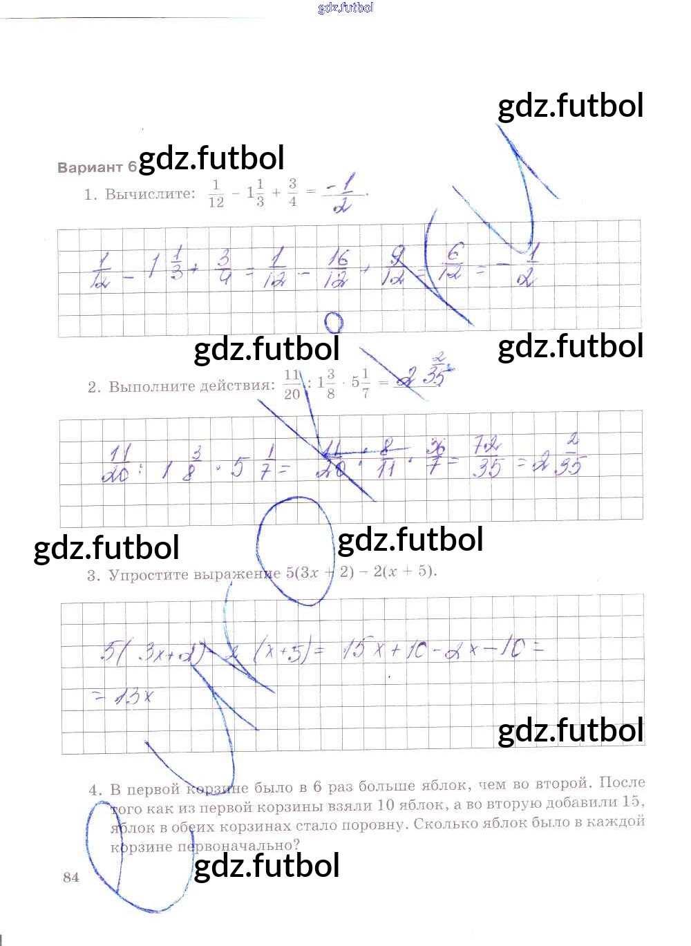 Готовые домашние задания по Математике за 6 класс Зубарева Тетрадь для контрольных работ 2020 ФГОС - Часть 1. Страницы 84