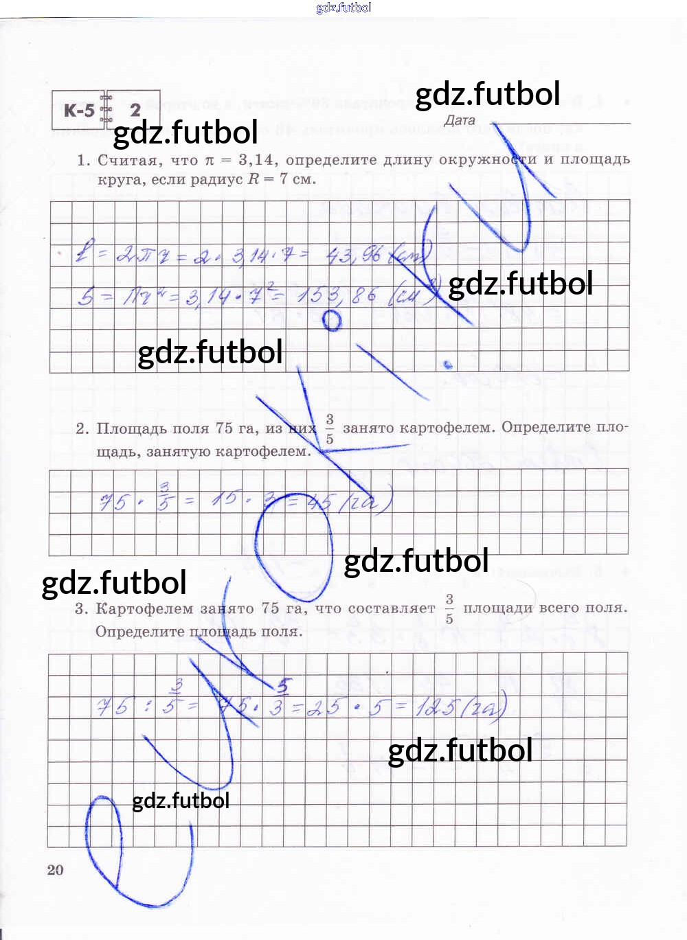 Готовые домашние задания по Математике за 6 класс Зубарева Тетрадь для контрольных работ 2020 ФГОС - Часть 2. Страницы 20