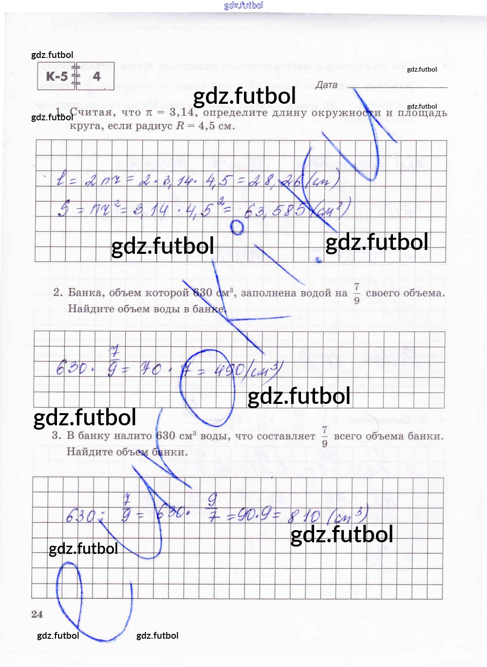 Готовые домашние задания по Математике за 6 класс Зубарева Тетрадь для контрольных работ 2020 ФГОС - Часть 2. Страницы 24