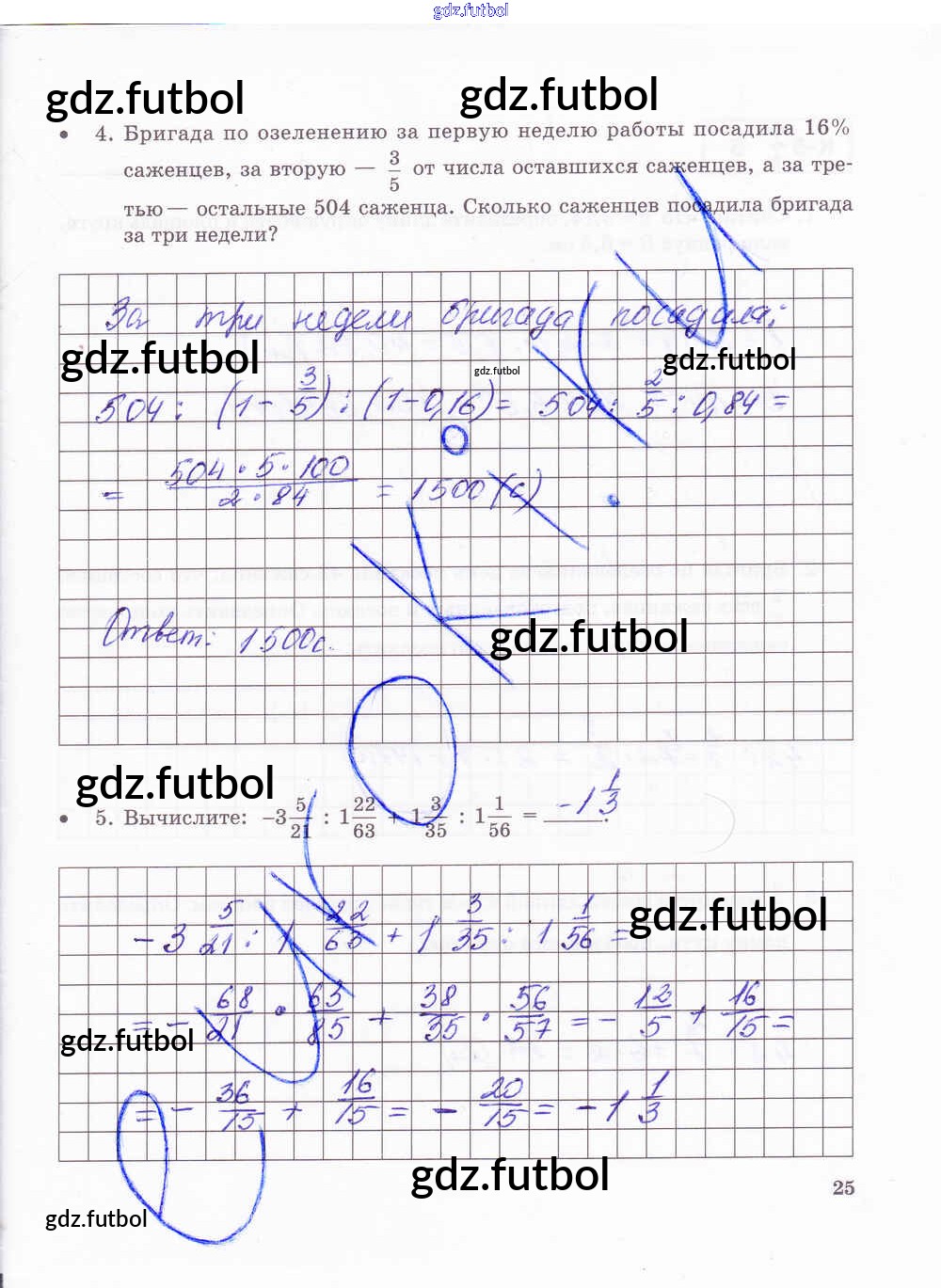 Готовые домашние задания по Математике за 6 класс Зубарева Тетрадь для контрольных работ 2020 ФГОС - Часть 2. Страницы 25