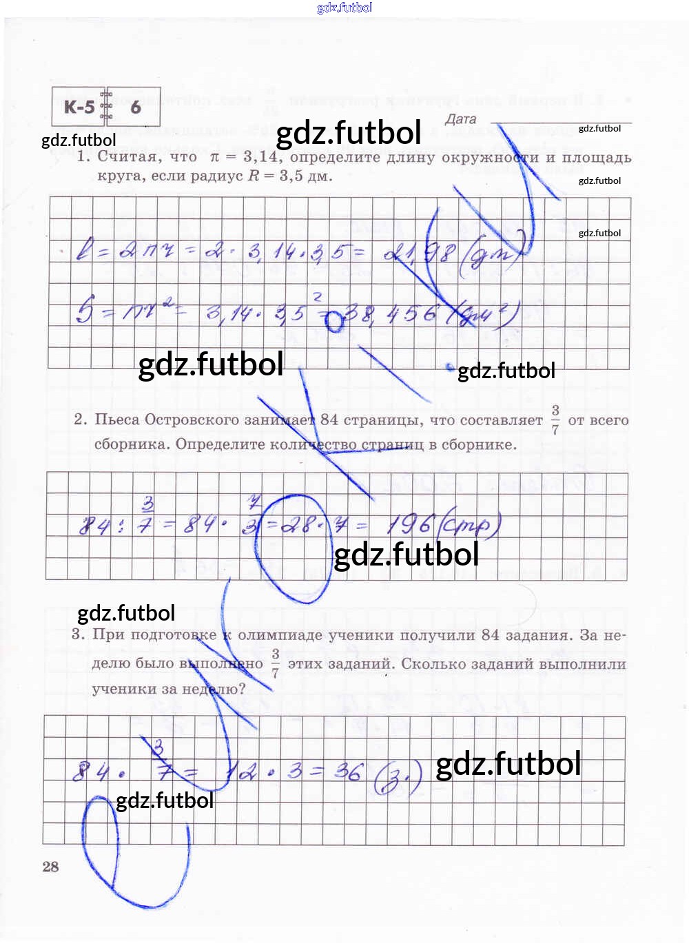 Готовые домашние задания по Математике за 6 класс Зубарева Тетрадь для контрольных работ 2020 ФГОС - Часть 2. Страницы 28