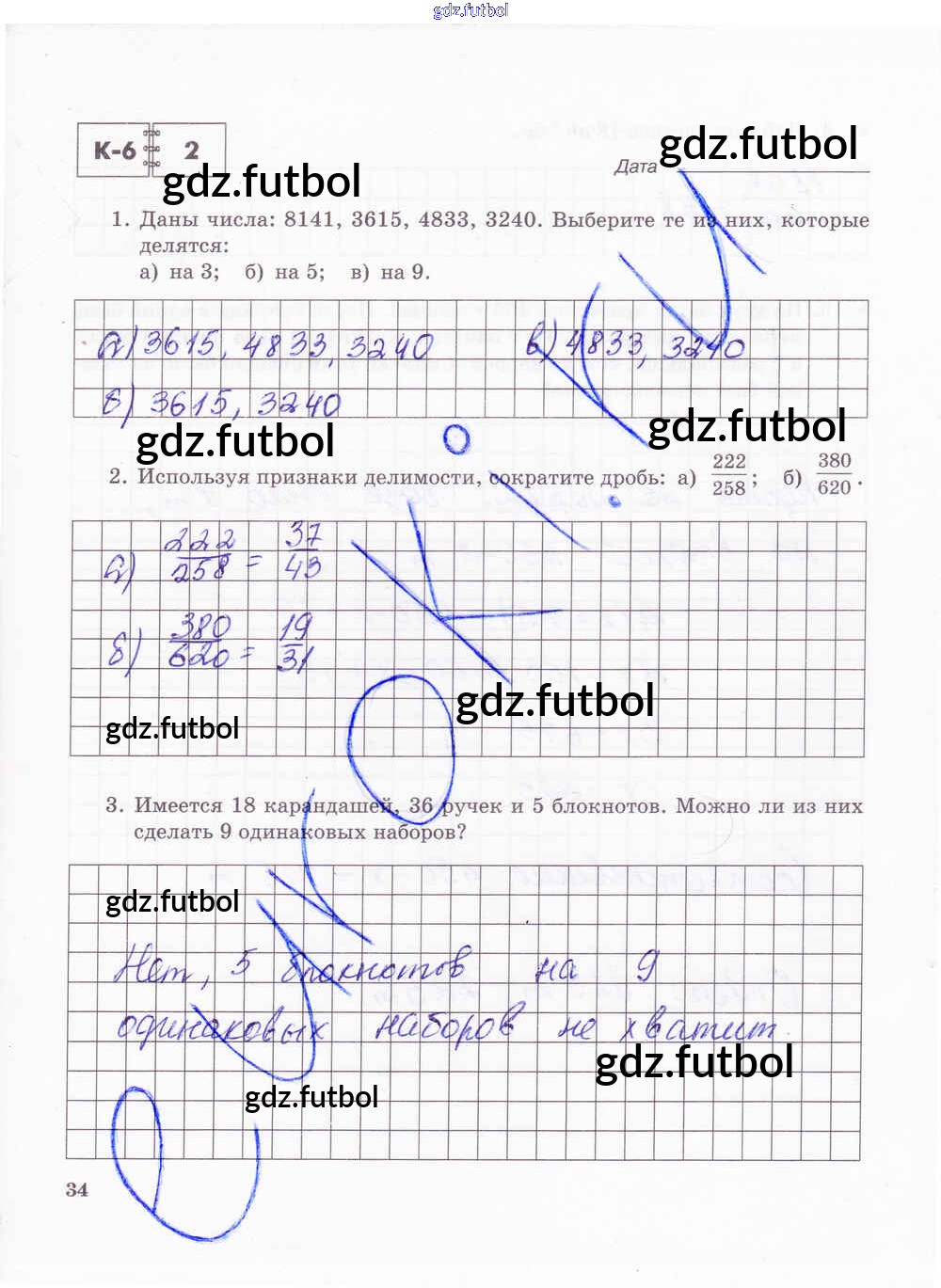 Готовые домашние задания по Математике за 6 класс Зубарева Тетрадь для контрольных работ 2020 ФГОС - Часть 2. Страницы 34