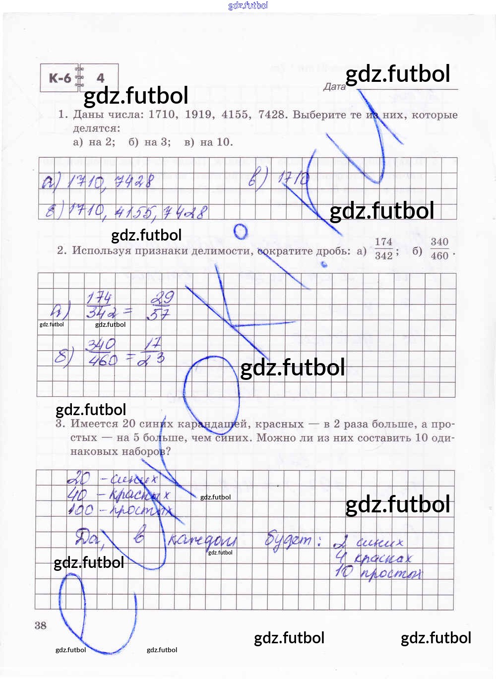 Готовые домашние задания по Математике за 6 класс Зубарева Тетрадь для контрольных работ 2020 ФГОС - Часть 2. Страницы 38