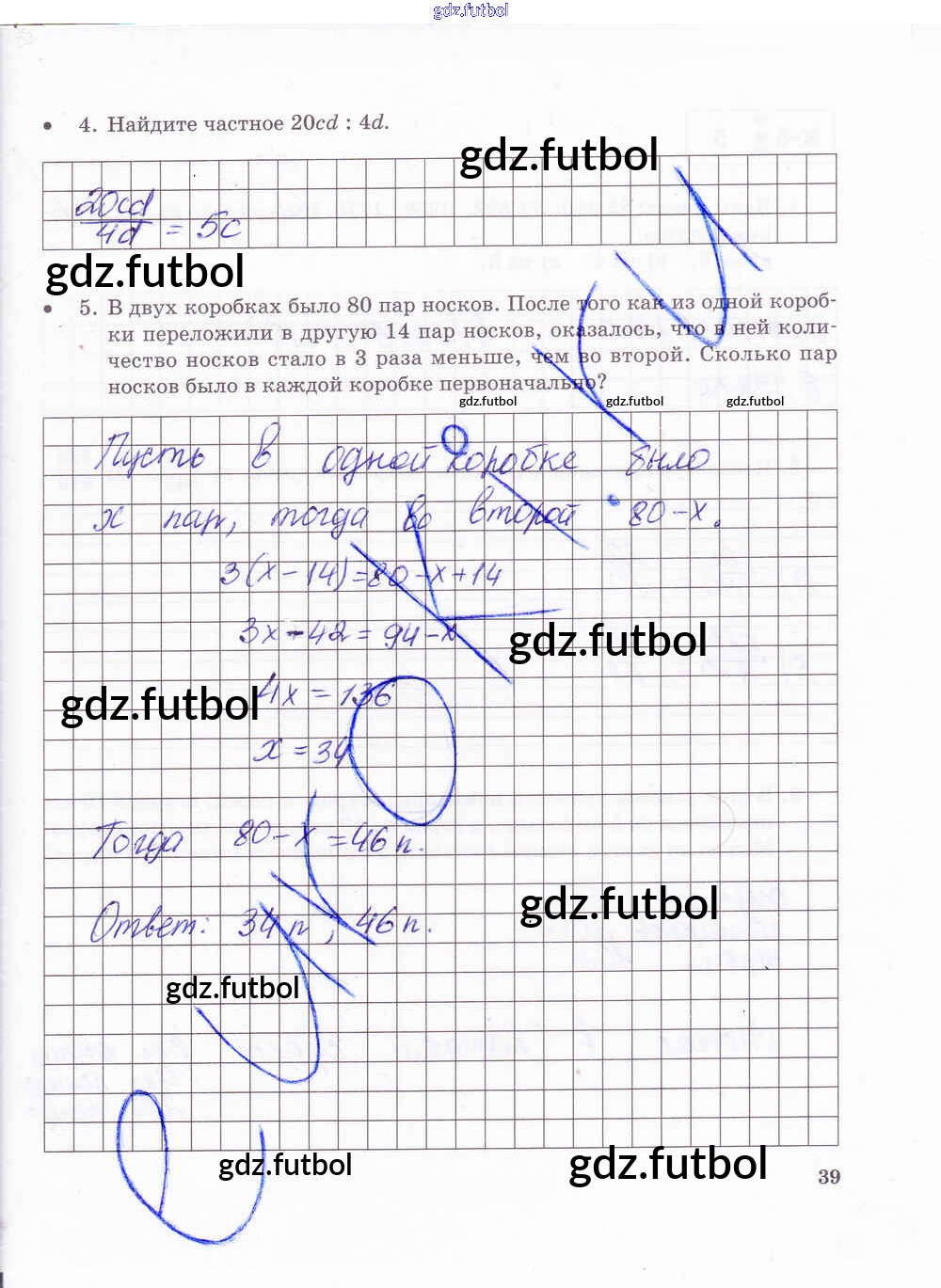 Готовые домашние задания по Математике за 6 класс Зубарева Тетрадь для контрольных работ 2020 ФГОС - Часть 2. Страницы 39