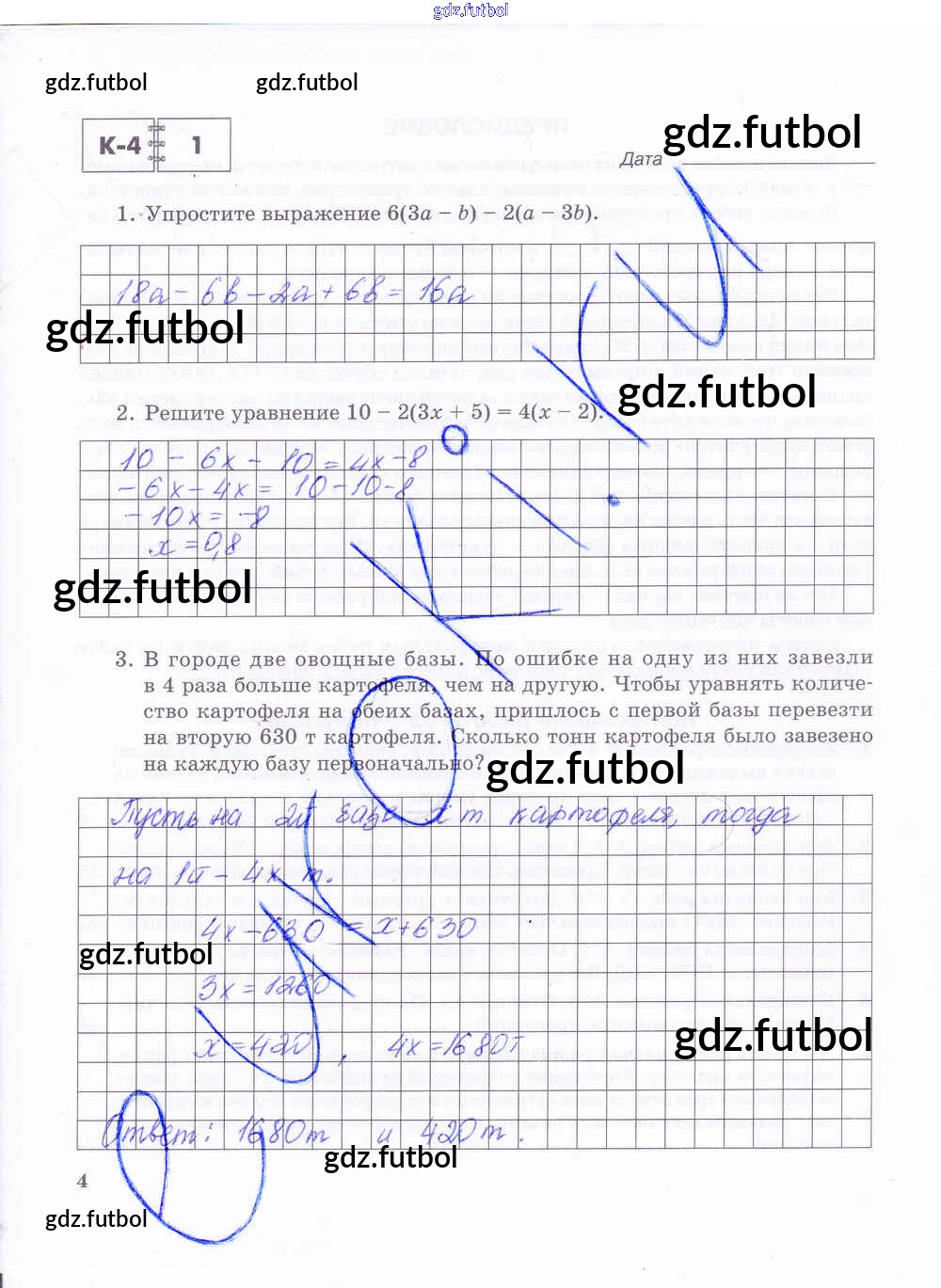 Готовые домашние задания по Математике за 6 класс Зубарева Тетрадь для контрольных работ 2020 ФГОС - Часть 2. Страницы 4