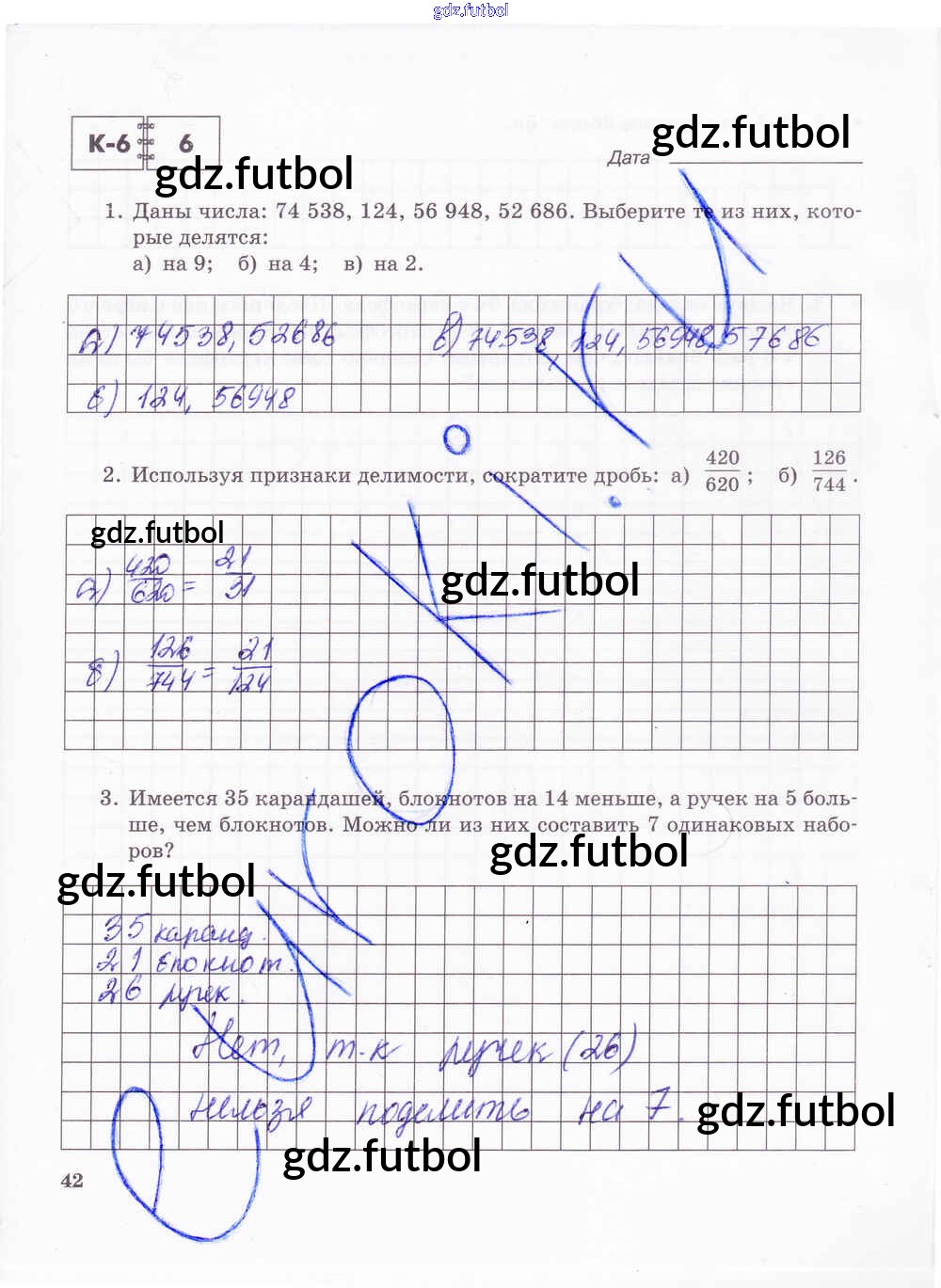 Готовые домашние задания по Математике за 6 класс Зубарева Тетрадь для контрольных работ 2020 ФГОС - Часть 2. Страницы 42